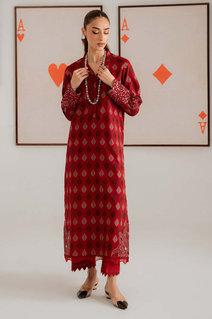 - Embroidered Cambric Jacquard Shirt Paired With Dyed Cambric Trouser