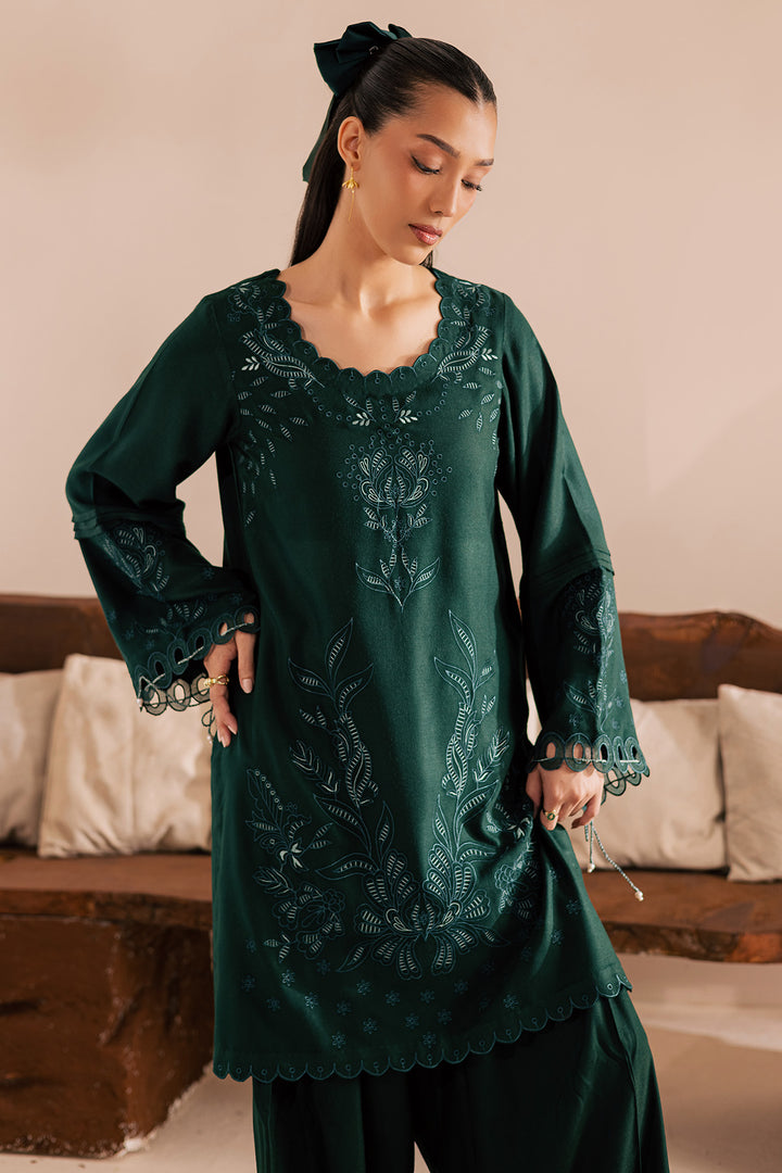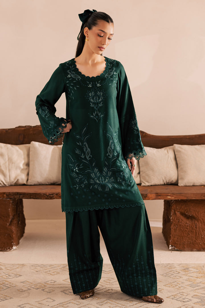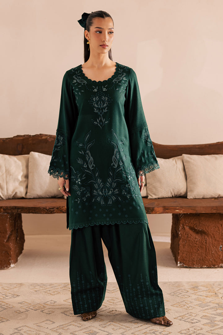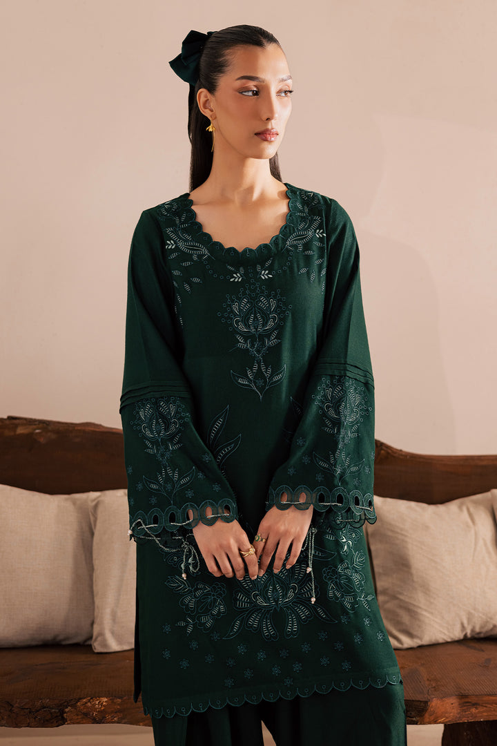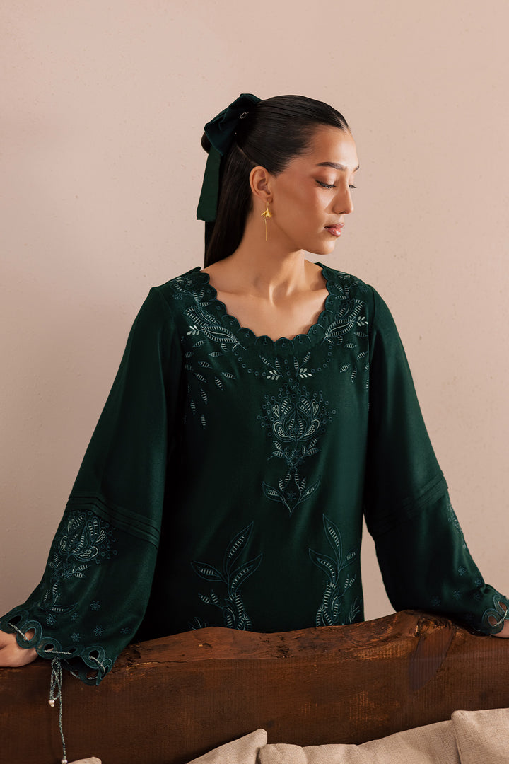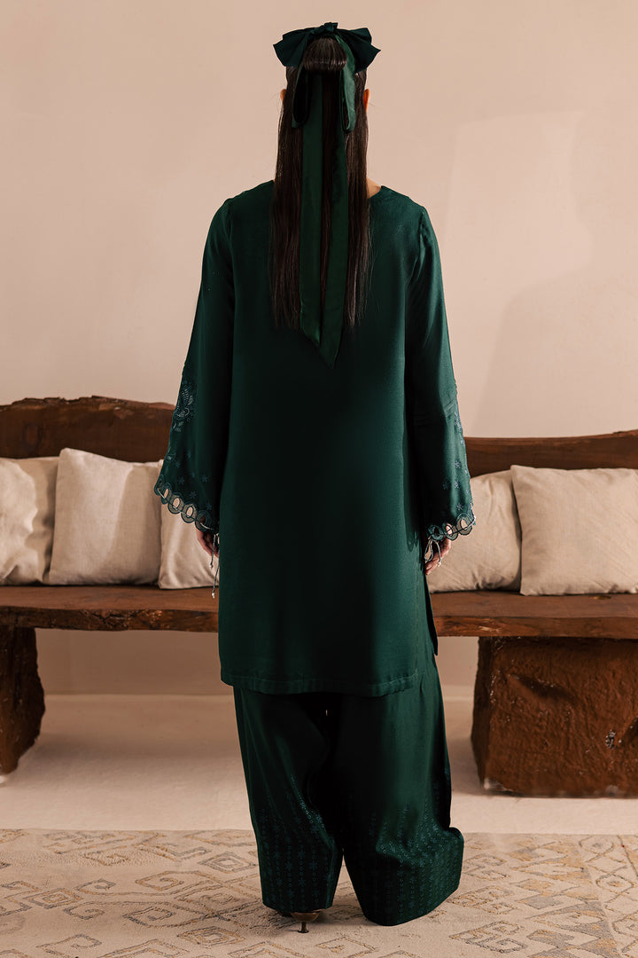 - EMBROIDERED LEATHER PEACH SHIRT PAIRED WITH EMBROIDERED LEATHER PEACH FARSHI SHALWAR