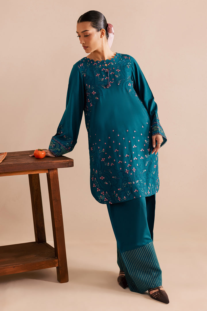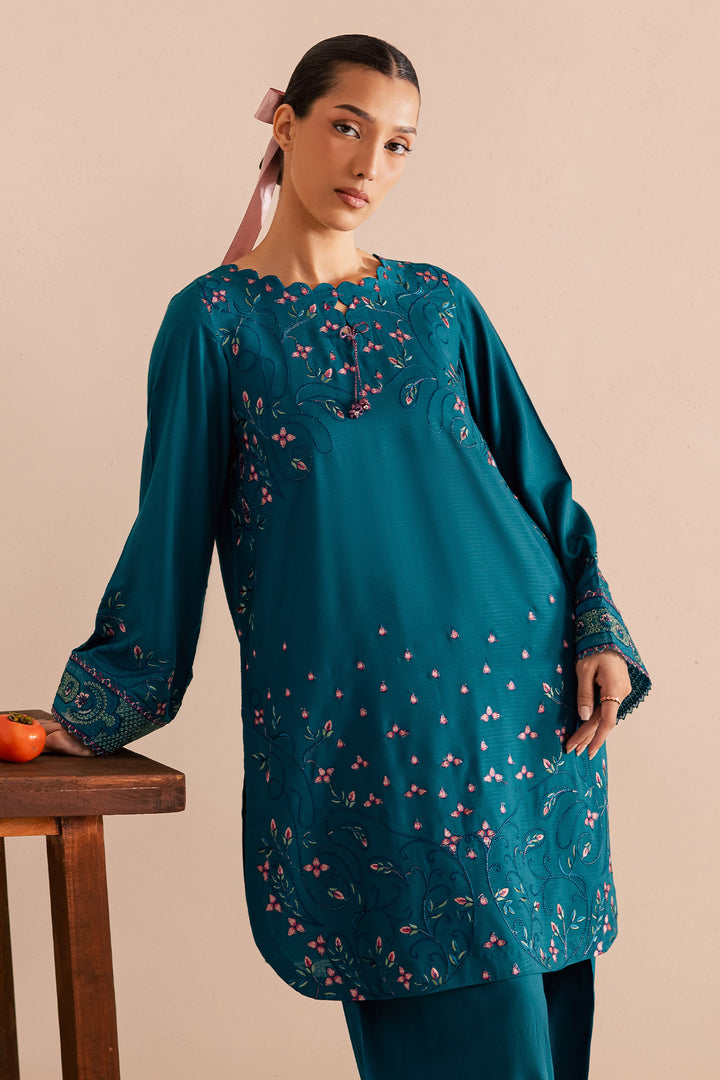 - EMBROIDERED VISCOSE DORIYA SHIRT PAIRED WITH EMBROIDERED VISCOSE FARSHI SHALWAR