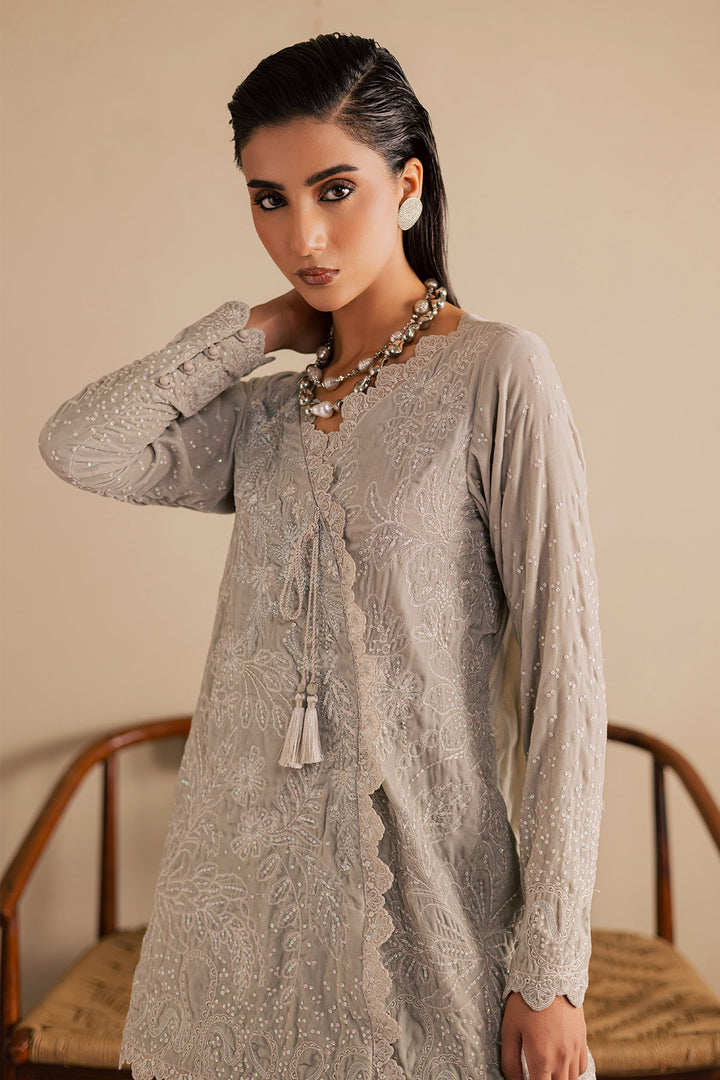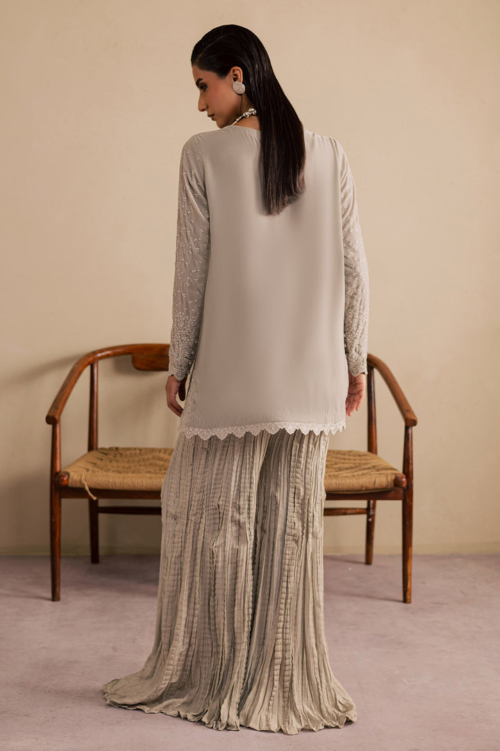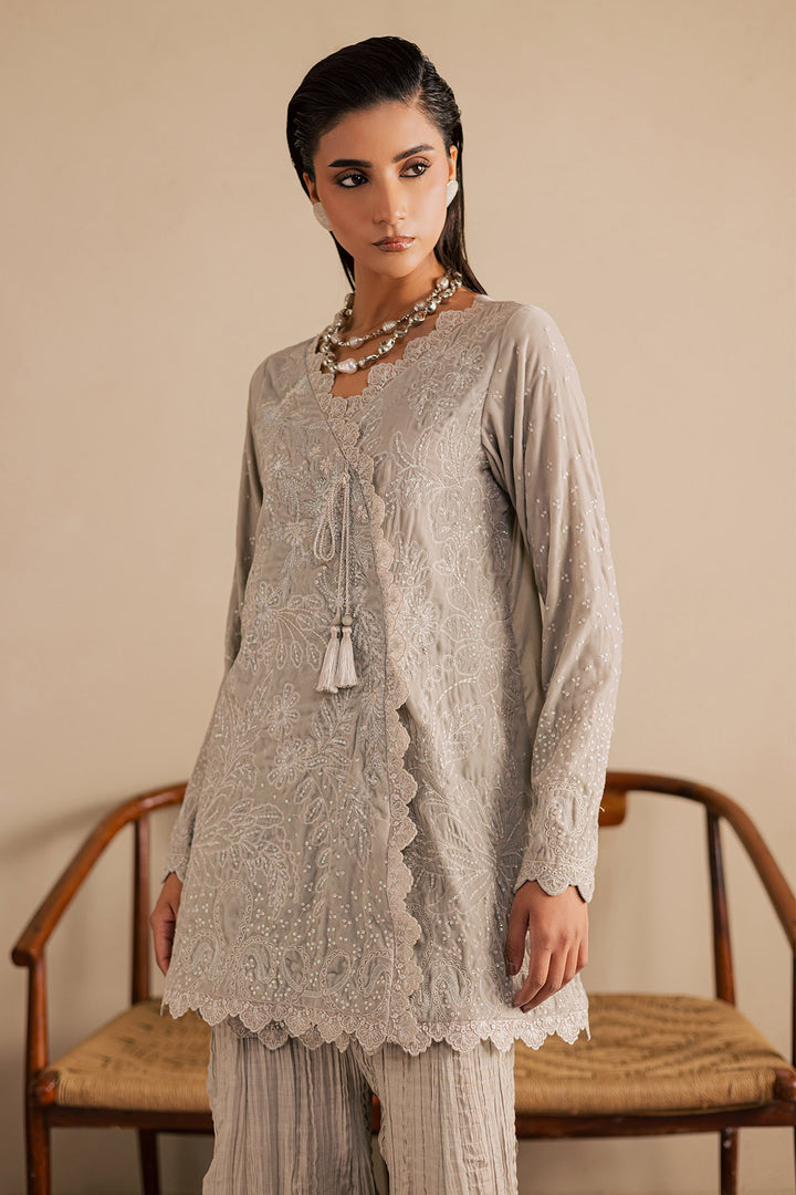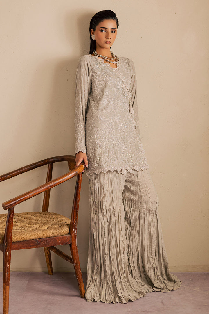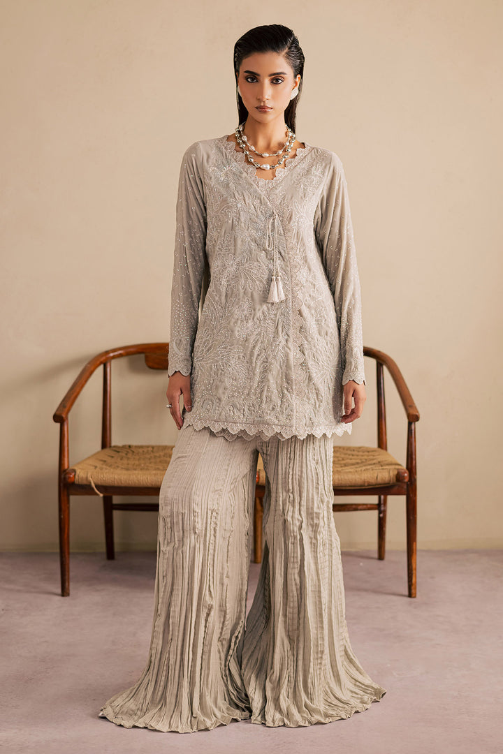 EMBROIDERED AND EMBELLISHED VELVET SHIRT PAIRED WITH CRUSHED RAWSILK PANTS